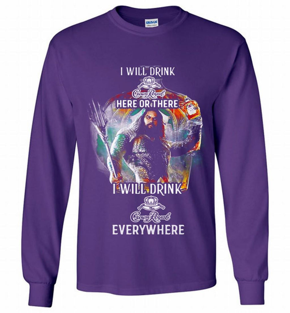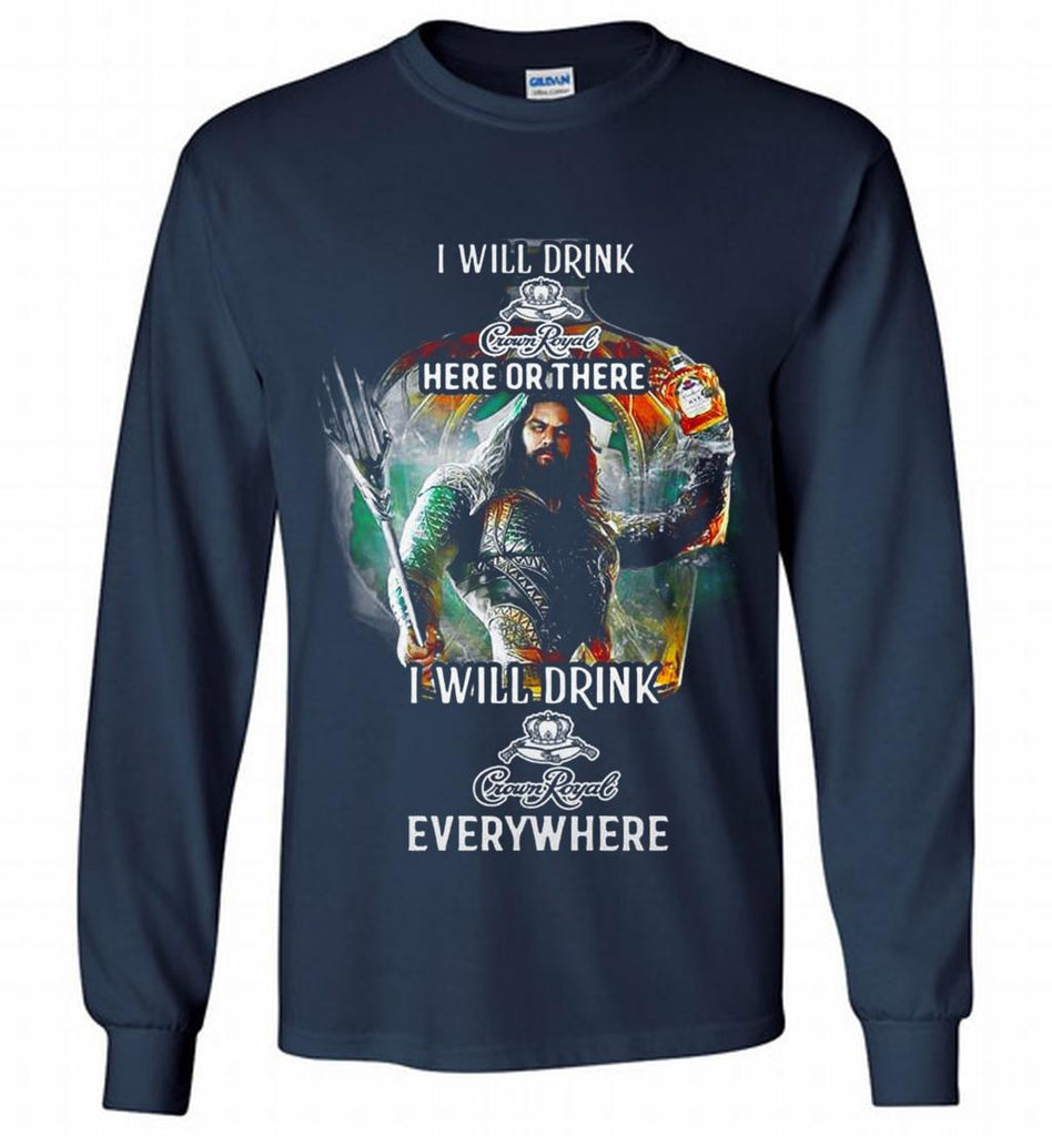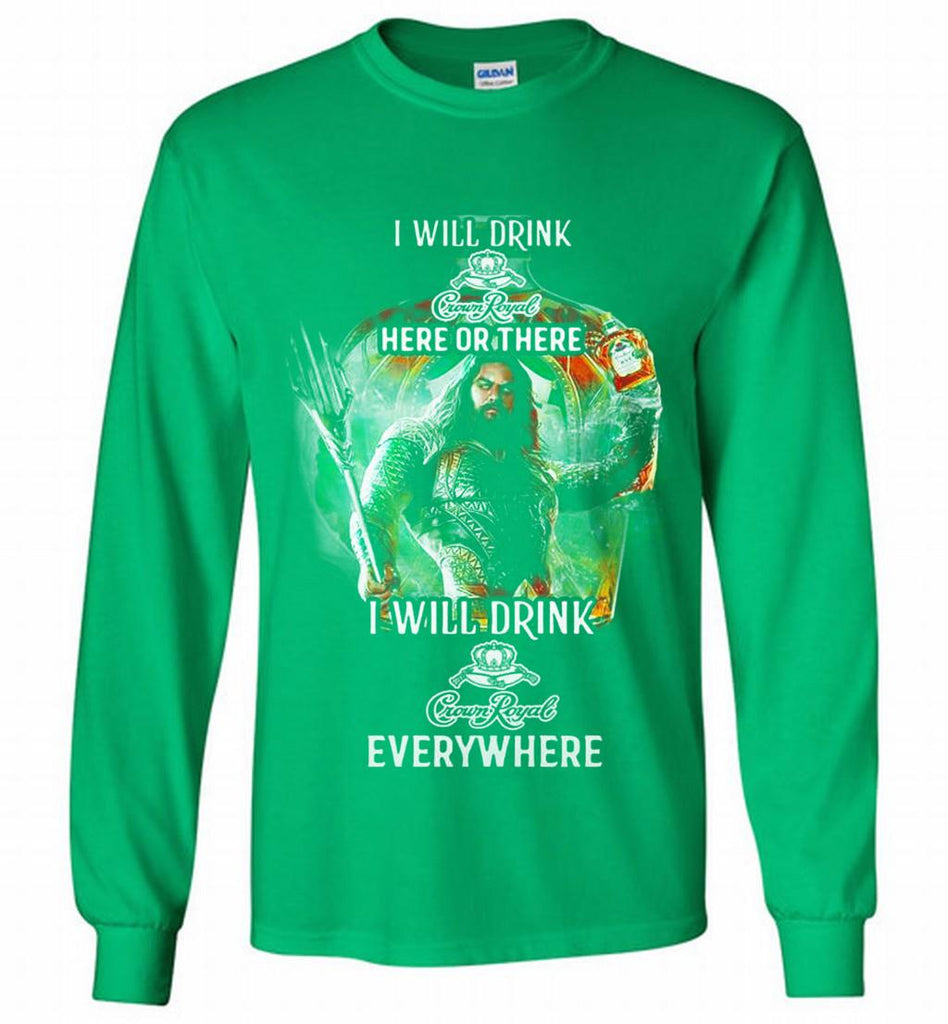 AQUAMAN I WILL DRINK CROWN ROYAL HERE THERE I WILL DRINK CROWN ROYAL EVERYWHERE Gildan Long Shirt