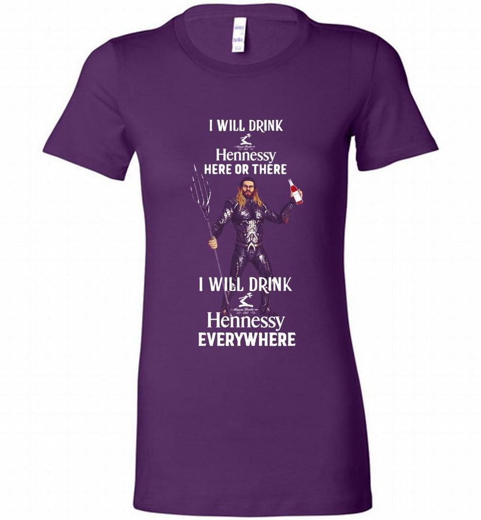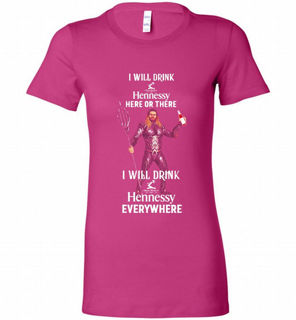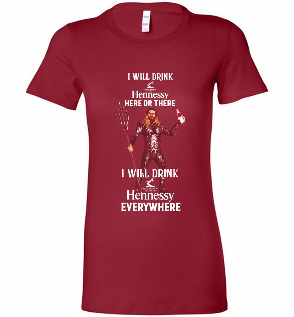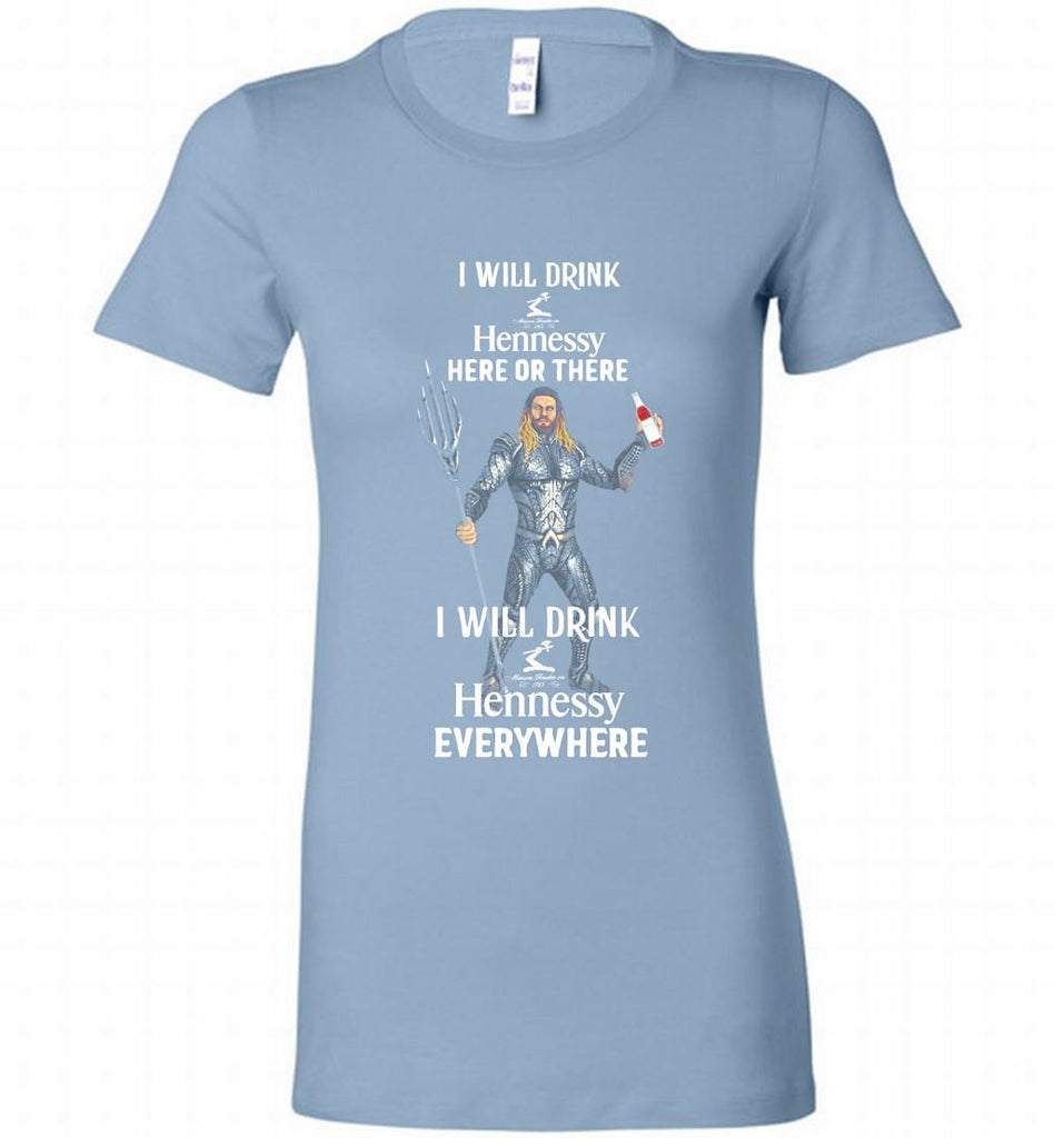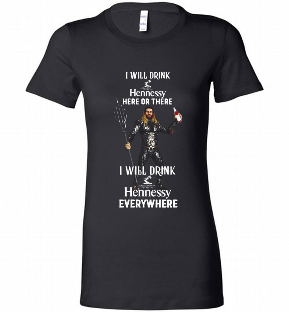 AQUAMAN I WILL DRINK HENNESSY HERE THERE I WILL DRINK HENNESSY Bella Ladies Tee