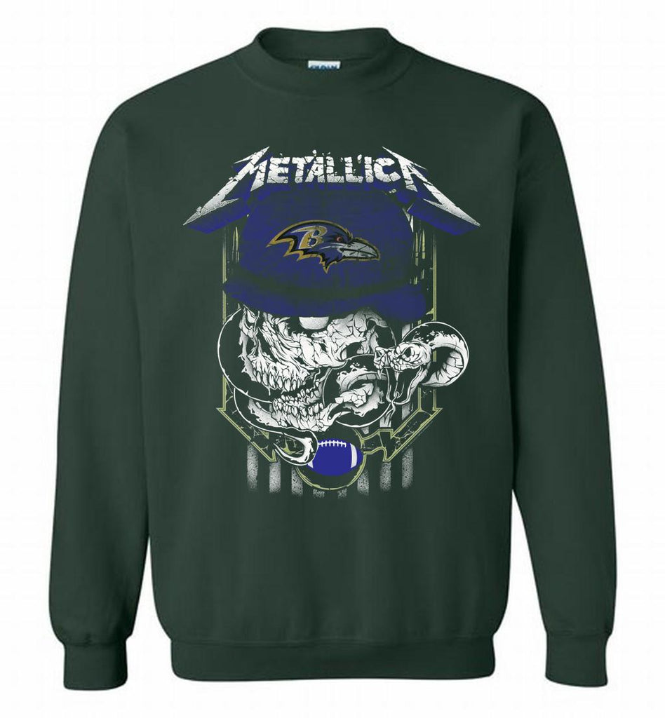 Metallica Skull Snake Baltimore Ravens Crewneck Sweatshirt