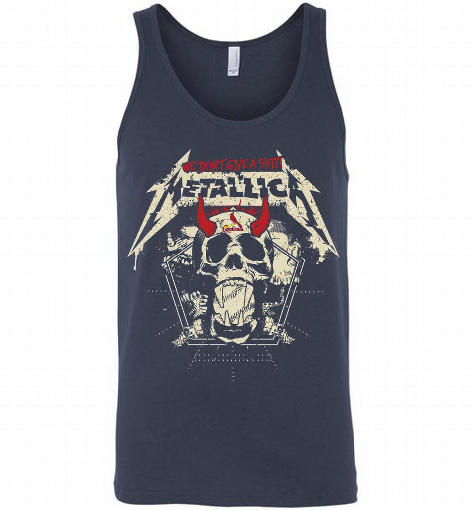 Metallica We Don't Give A Shit St Louis Cardinals Tank If you are looking for a good T-shirt with a beautiful design, consider our shop. We always supply products with the best high quality items. We also offer great printing quality with the best price in USA. The creativity of our artists will give you great T-shirts. Of course, it would be a perfect gift for your family members, your lover, your friends,... on the the anniversarys. We offer many different styles to choose:T-Shirt, Tank, v-neck,hoodie, long shirt...